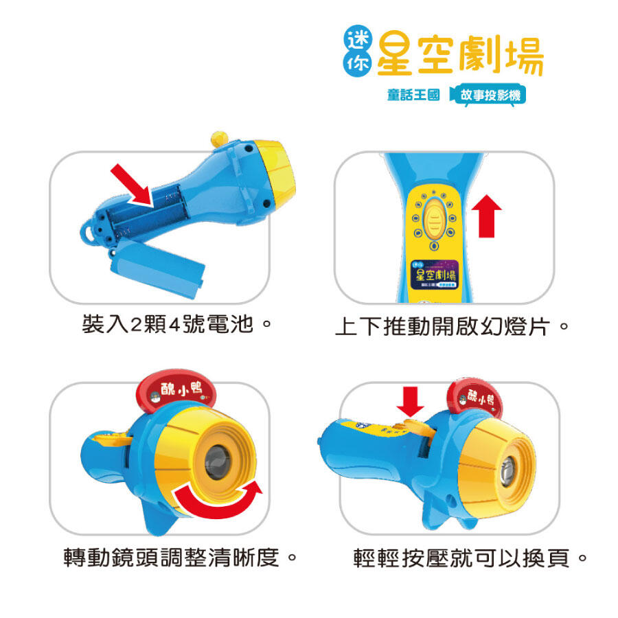 Enriching life experience, stimulating language development, listening to stories, and telling stories can not only close parent-child relationship, but also the best activities for children's language development, imagination development, life theory and emotional expression. This product contains a flashlight projector, 3 story slides and 3 story thick paper books. Through