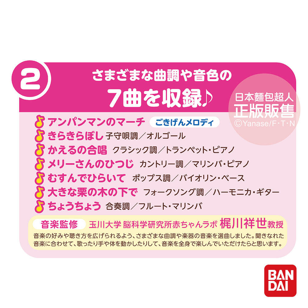 2. Select the melody or dialogue: press the pink button on the right side of the keyboard, Anpanman march; nursery rhymes; The corresponding Japanese dialogue of Anpanman's partner will be sent out!