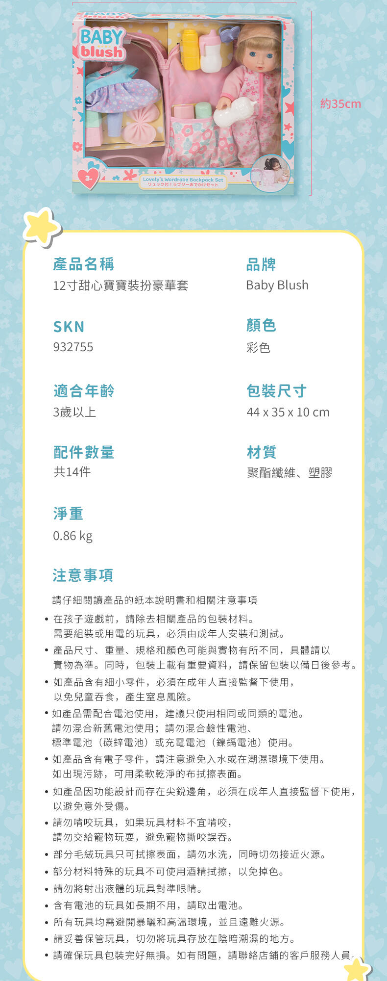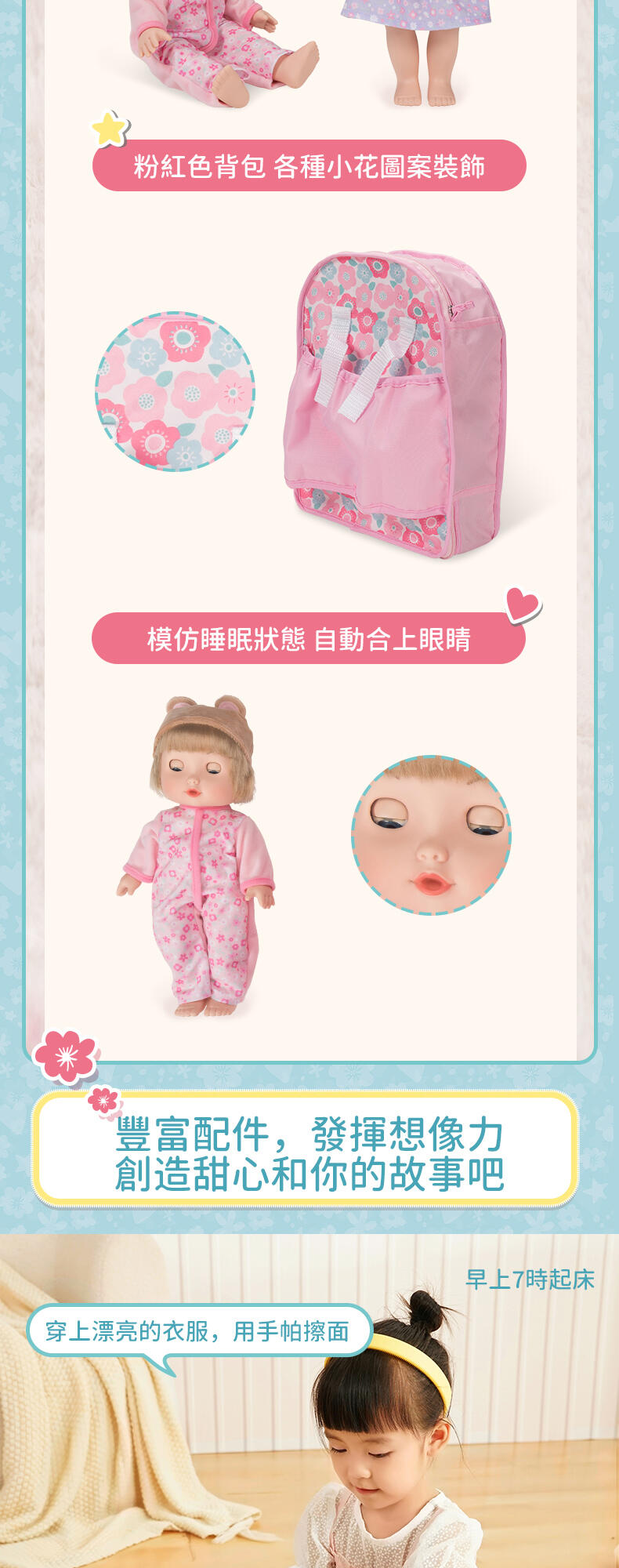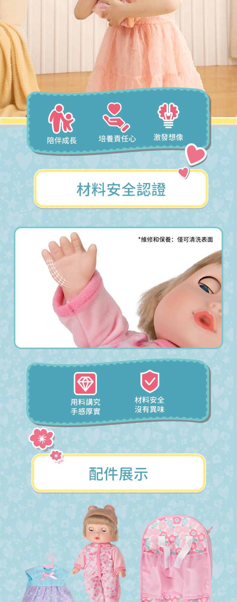 Lovely is a kind and special friend who you can nurture and cherish. This special play set has everything you need to take her out and about with you - extra clothes, milk bottles, sip cup, bath essentials and a special backpack to carry everything. Lovely is thoughtfully proportioned for little hands, and kids will love dressing her, hugging her and taking her on new adventures!
