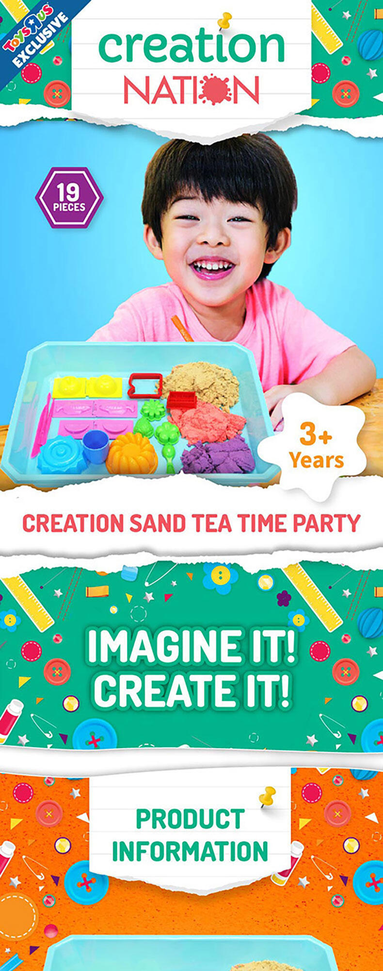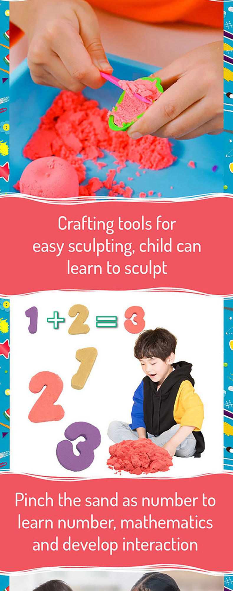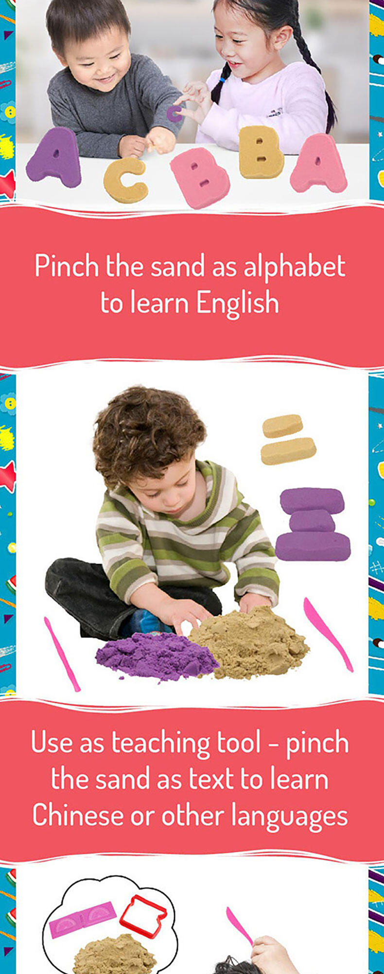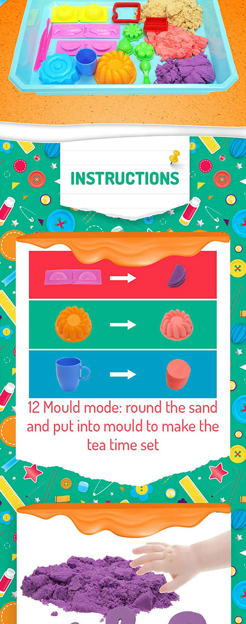 The next star junior chef is giving their magic touch to the malleable Creation Sand while chatting with their diners. They start the feast with the moulded red bread, followed by the modelled purple fish. Last but not least is the non-sticky pudding with a brown strawberry! Bon appetit!