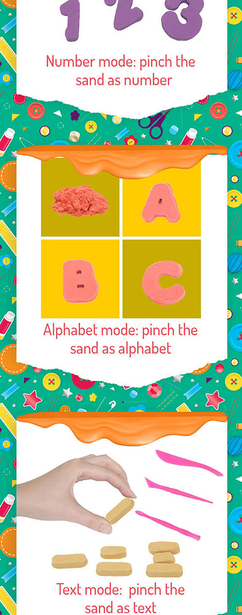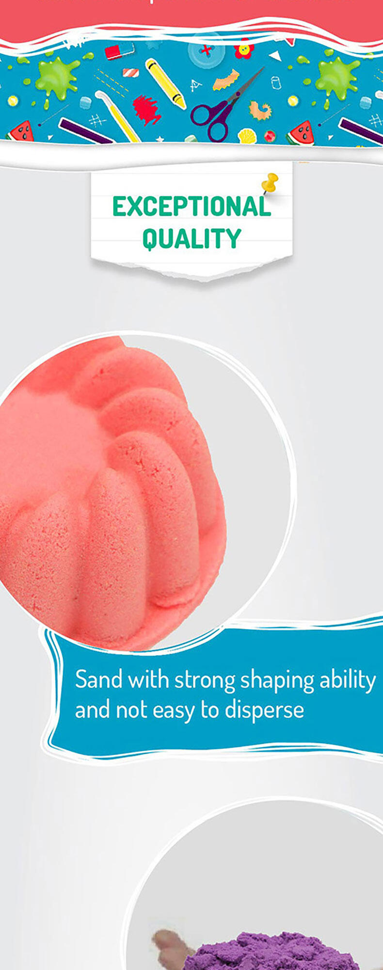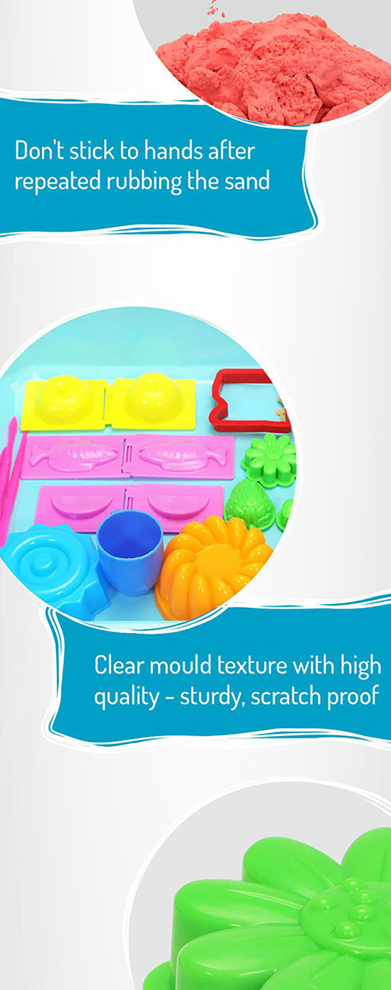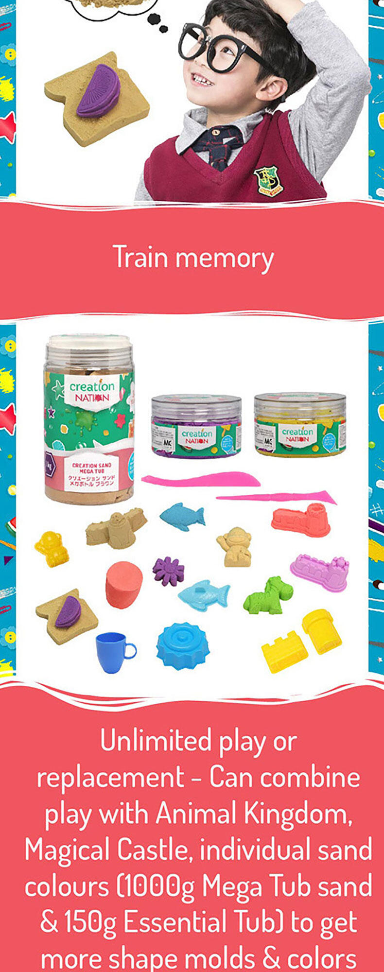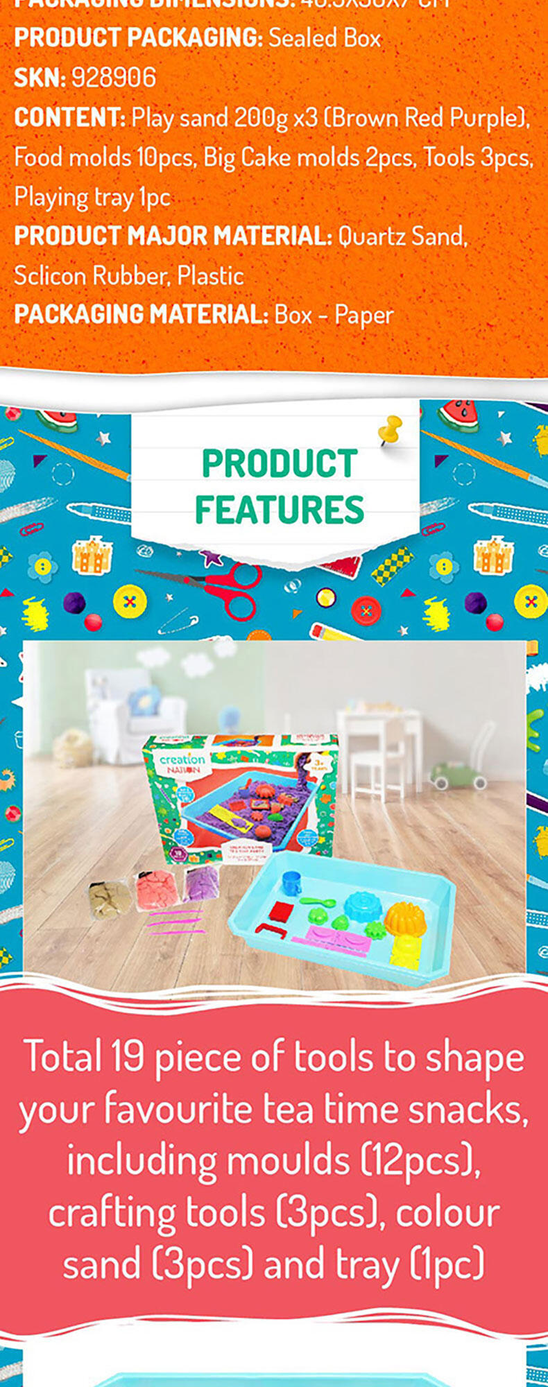 The next star junior chef is giving their magic touch to the malleable Creation Sand while chatting with their diners. They start the feast with the moulded red bread, followed by the modelled purple fish. Last but not least is the non-sticky pudding with a brown strawberry! Bon appetit!