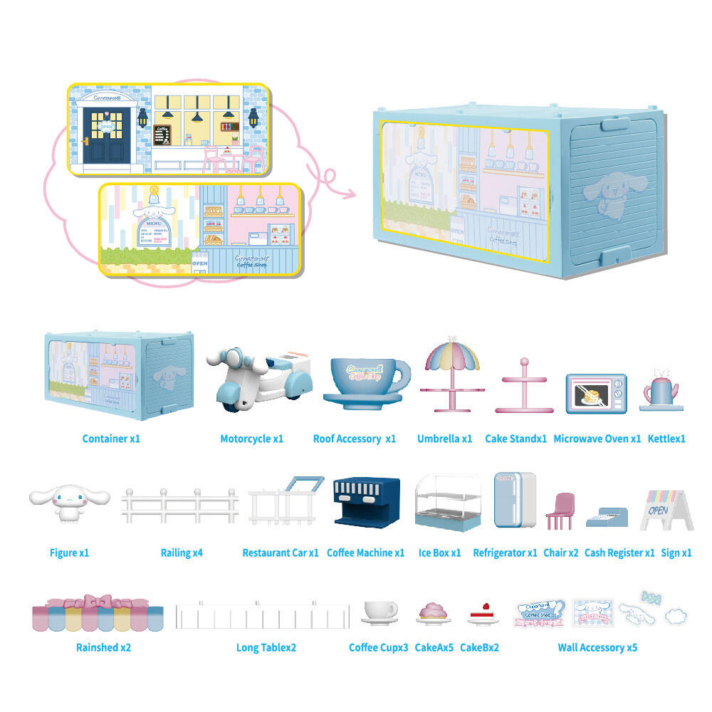 The super popular big-eared dog container house, expand the container to transform into a cute cafe, rich decorative accessories include big-eared dog, dining car, outdoor dining table and chairs, order counter, refrigerator, commodity display stand, display cabinet, food model and super Adorable motorcycle! With the same series of container houses, it can be stacked into a store building!!