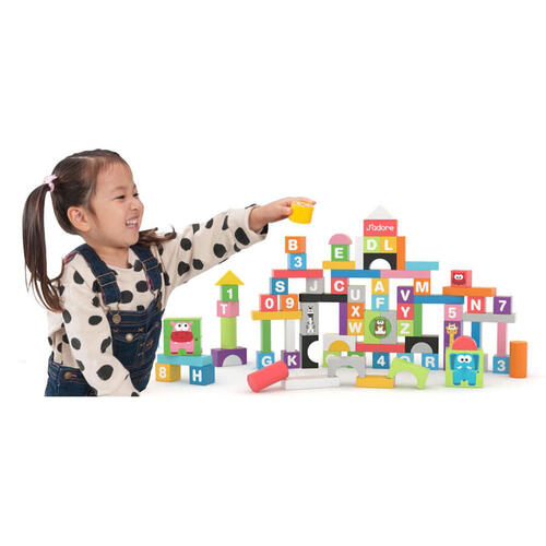 Endless ways to play with J'ADORE Nature Wood Blocks created and designed by Quercia-Delvigne with the child's curiosity in mind. This nature wood toy is durable to last and promote learning ABCs and 123s in a fun and vibrant way. Promote hand-eye coordination and enhance fine motor skills while building on the blocks. This set includes J'ADORE's friendly animals to also spark imaginative play and can be conveniently stored in the packaging so the child will never loose any pieces. Search qudetube on YouTube for a demo and other similar products.