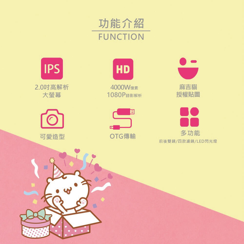 ●內建超萌麻吉貓貼圖,讓孩子自行創作 ★加贈專屬超萌麻吉貓大頭鏡頭蓋。