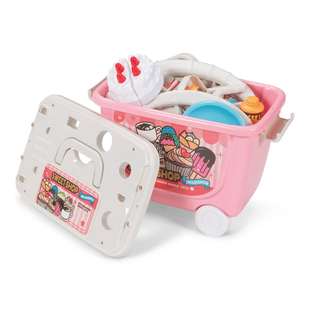 Little ones have the chance to role-play owning and operating their own little ice cream cart. This set includes all the essentials to keep customers happy - ice cream, desserts and drinks. There is bright, fun signage for the cart, as well as utensils for serving all the yummy creations. Each component of the cart encourages social and creative development and unlocks hours of fun with friends and family. Write a sweet story today