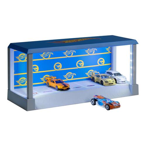 Bring your Hot Wheels collection to life with this Garage Display Case Light. Drive your toy car up the entry ramp and park it in one of the dedicated spaces - store up to 7 Hot Wheels cars.