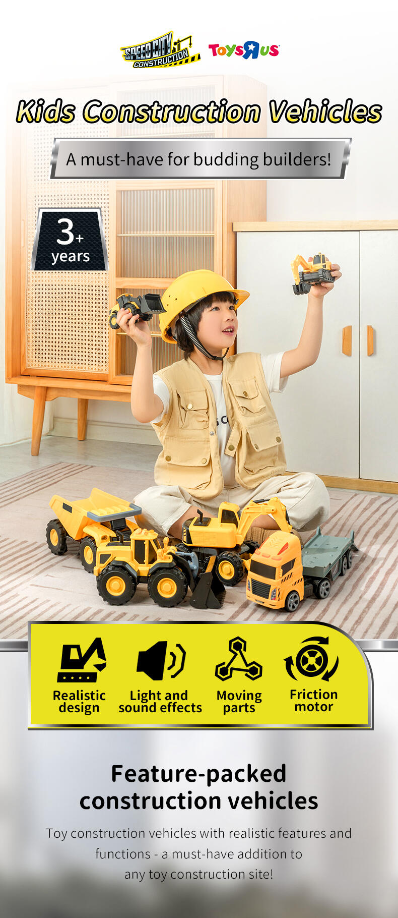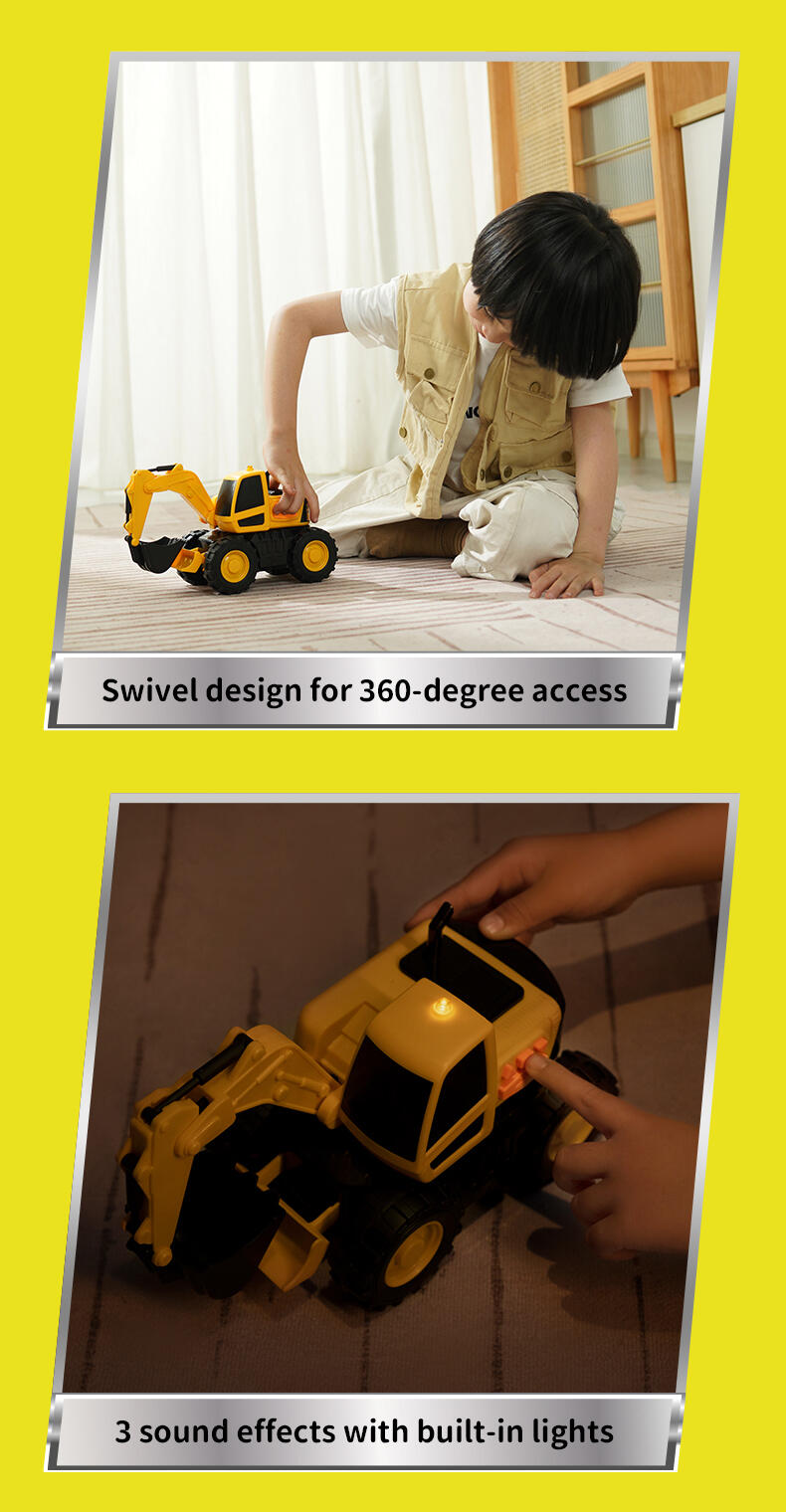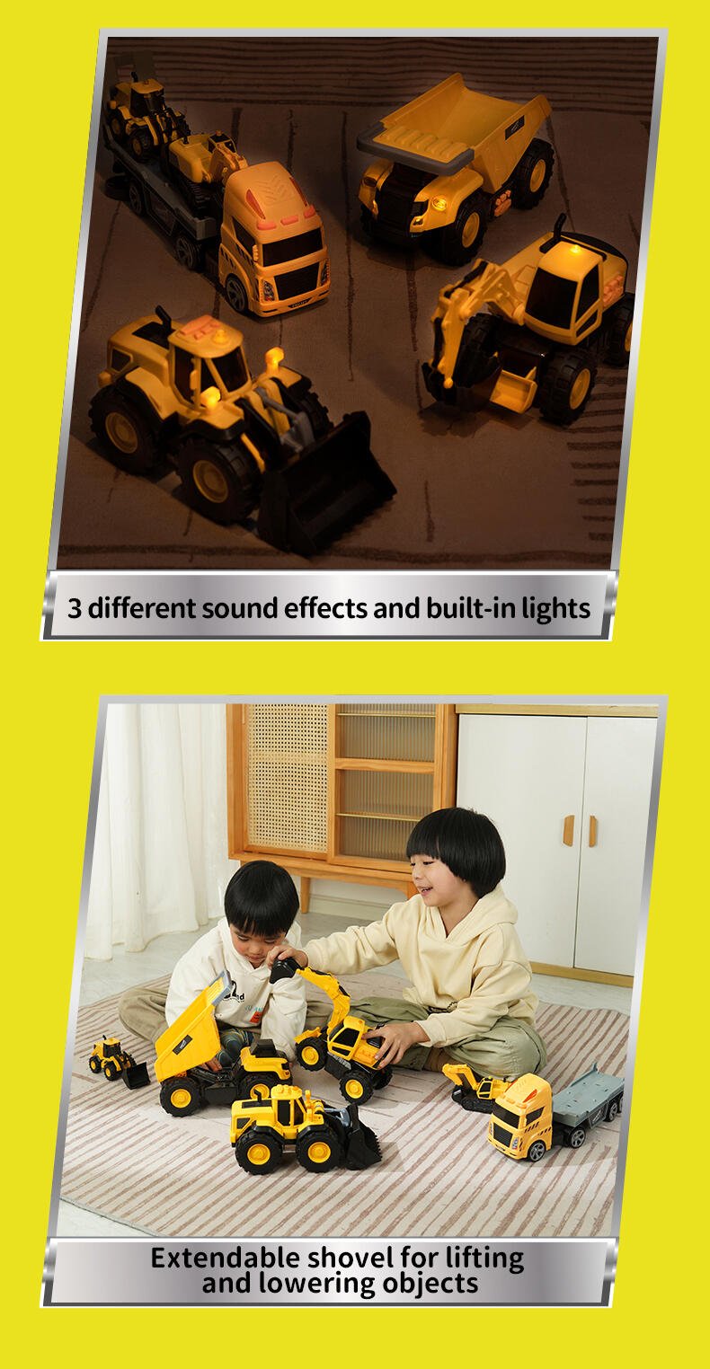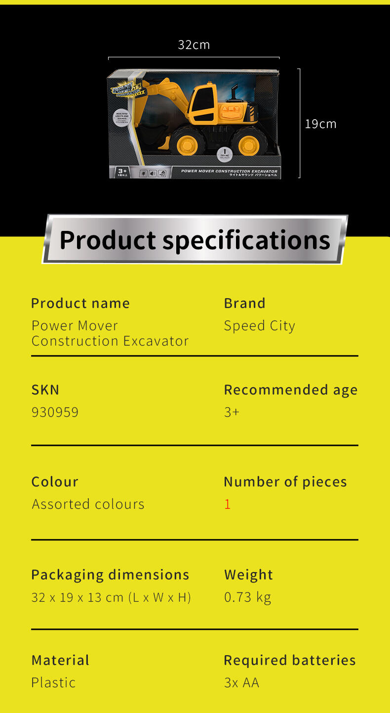 When it comes to heavy equipment, you need a powerful vehicle to get around. The Flashing Construction Transporter can carry your excavator and loader with ease as you make your way from one site to the next - just drive up the ramp and you’re ready to go! The realistic flashing lights and engine sounds create an authentic play experience, while the excavator and loader feature manually operated front buckets. Each of the vehicles are the perfect size for ‘push along’ play and this set will help inspire kids to explore and learn about the world around them.