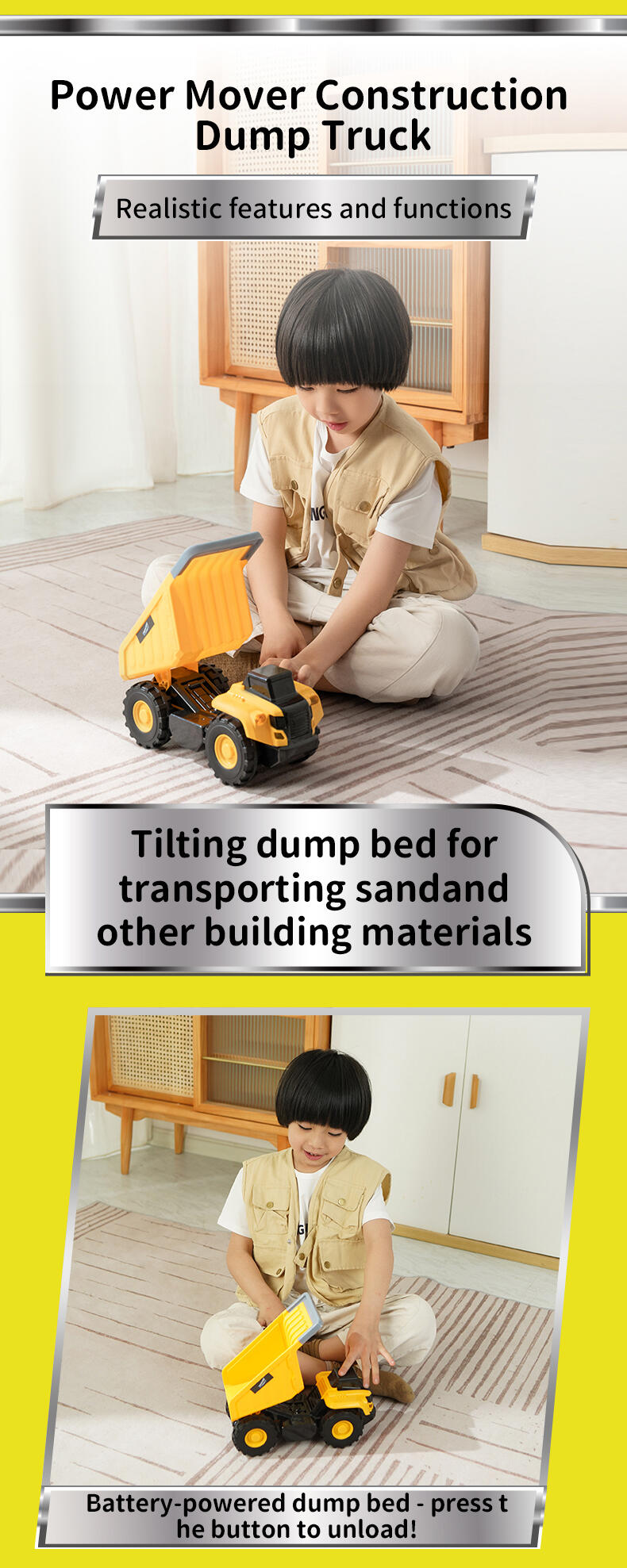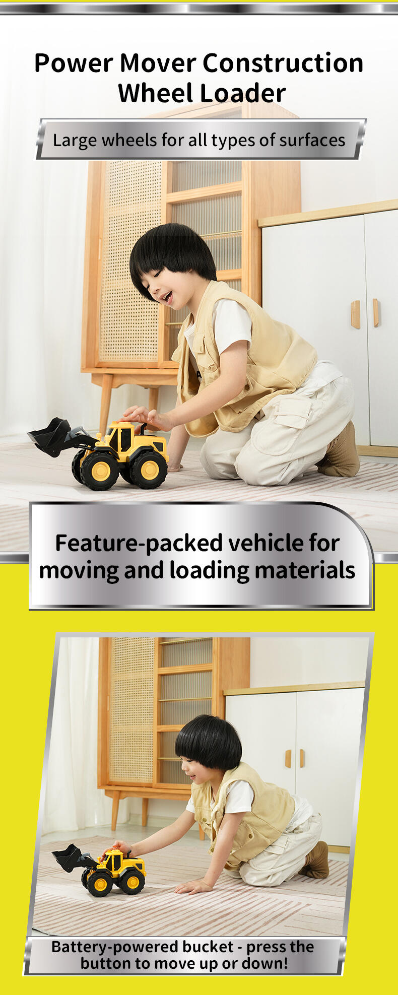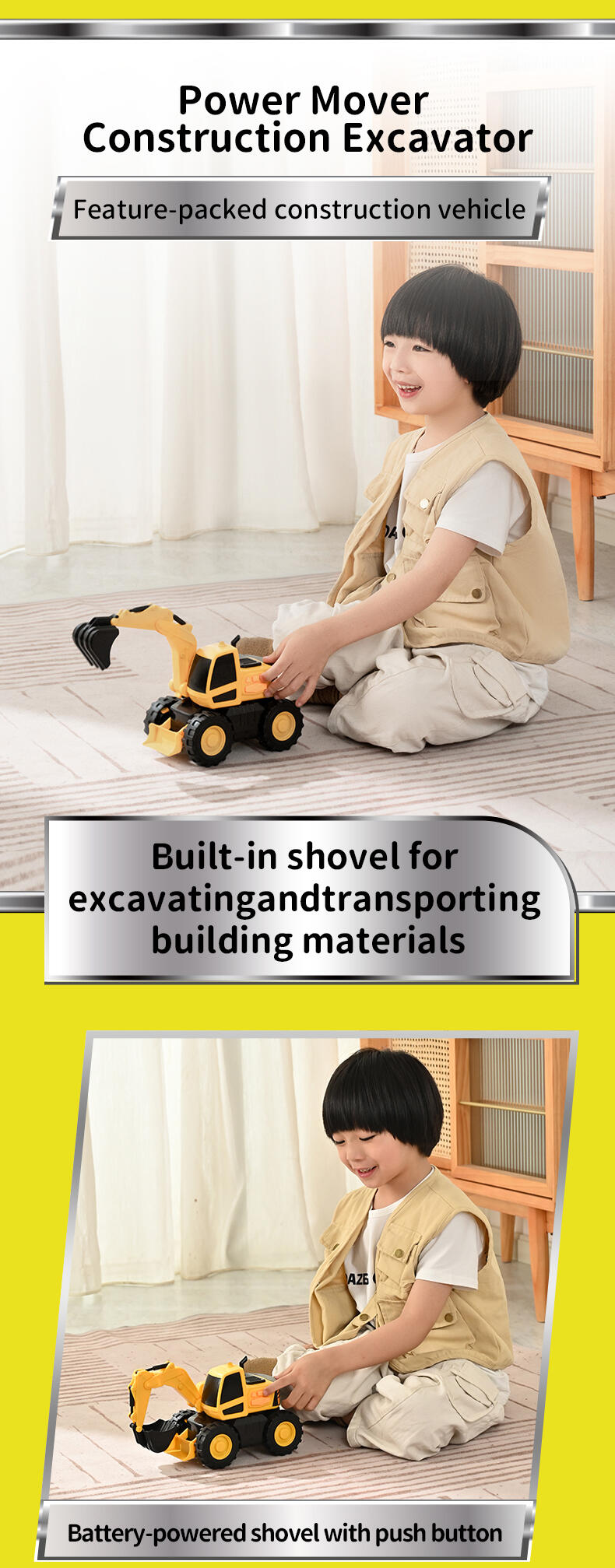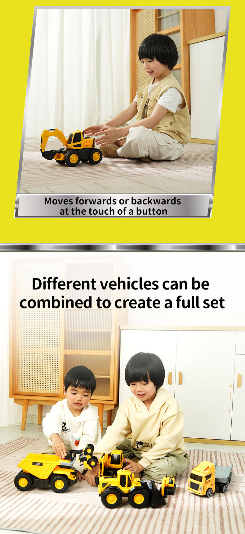 When it comes to heavy equipment, you need a powerful vehicle to get around. The Flashing Construction Transporter can carry your excavator and loader with ease as you make your way from one site to the next - just drive up the ramp and you’re ready to go! The realistic flashing lights and engine sounds create an authentic play experience, while the excavator and loader feature manually operated front buckets. Each of the vehicles are the perfect size for ‘push along’ play and this set will help inspire kids to explore and learn about the world around them.