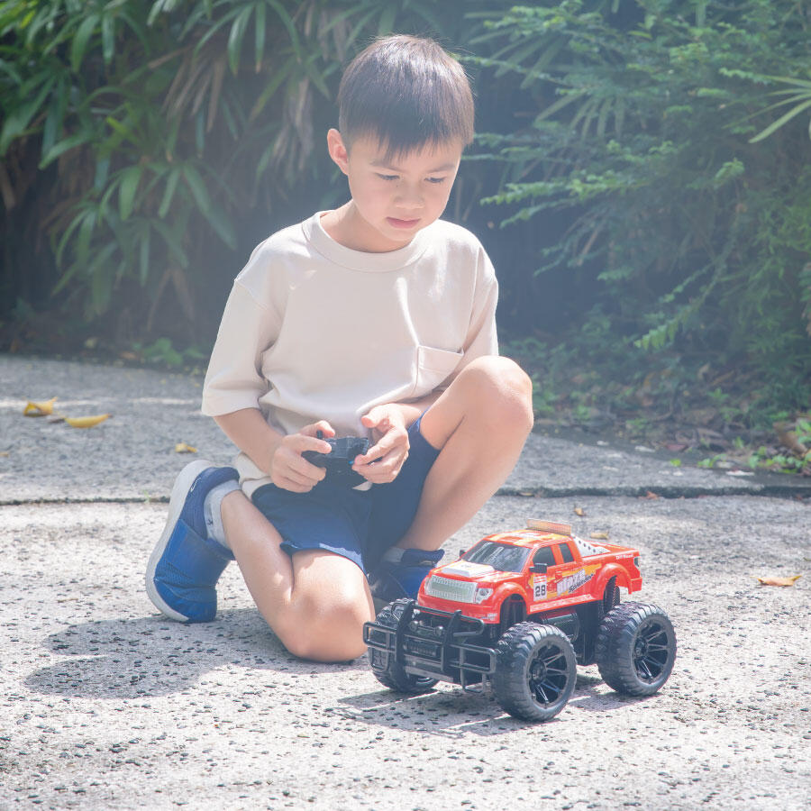 This impressively designed vehicle is made for full function, all-action handling both on and off the road. The vibrant body with unique accents sets the tone for speed and performance. The responsive controller puts you out front and in-charge whether you’re racing or stunting.