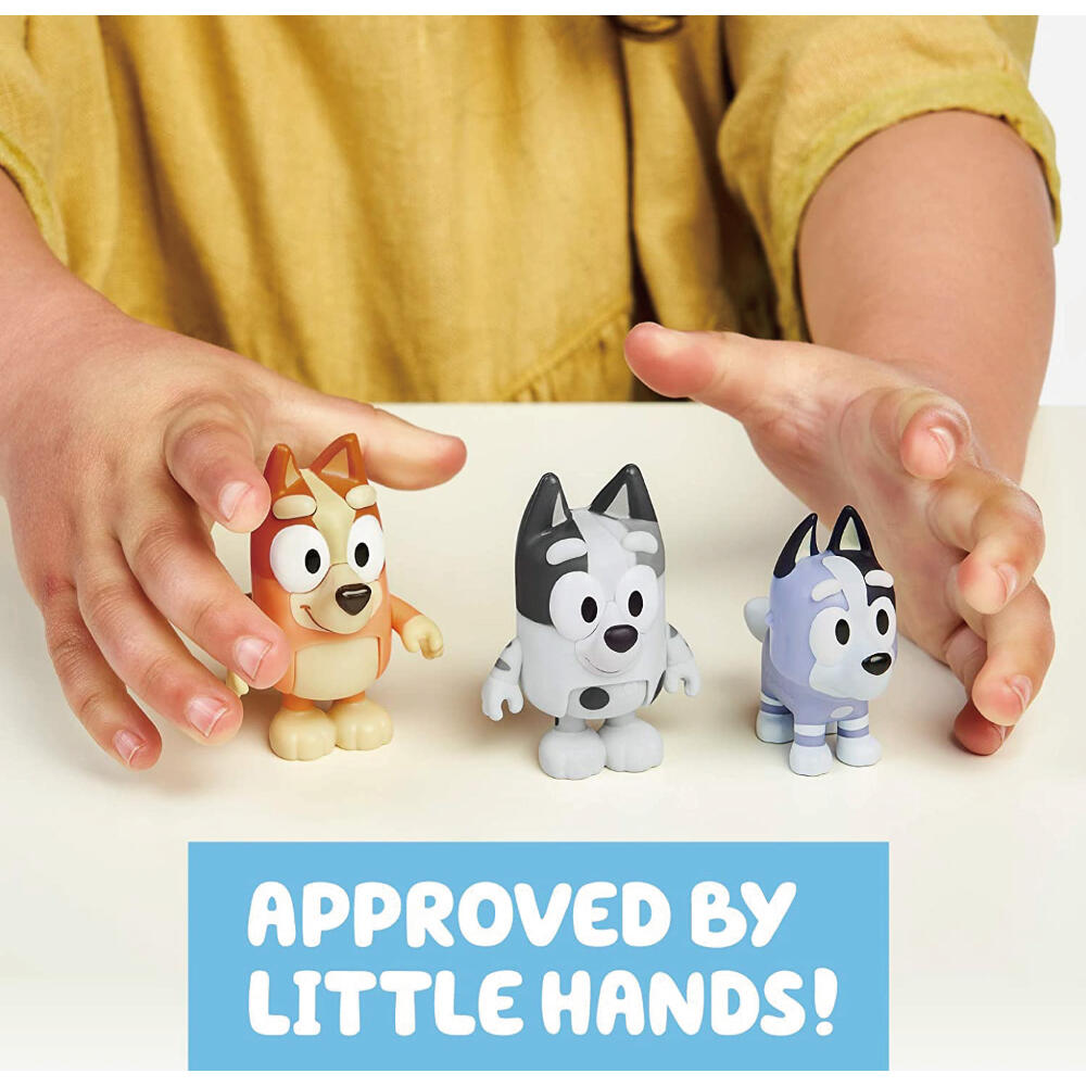 - 使用 Bluey 公仔 3 件組,在家中重現 Bluey 電視節目中最難忘的時刻。