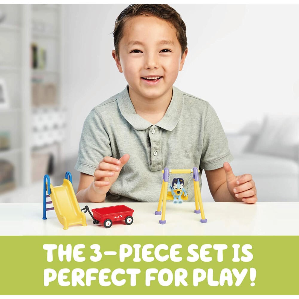 - 公園玩具組包括一個功能強大的鞦韆 Place Bluey On It 並來回推她