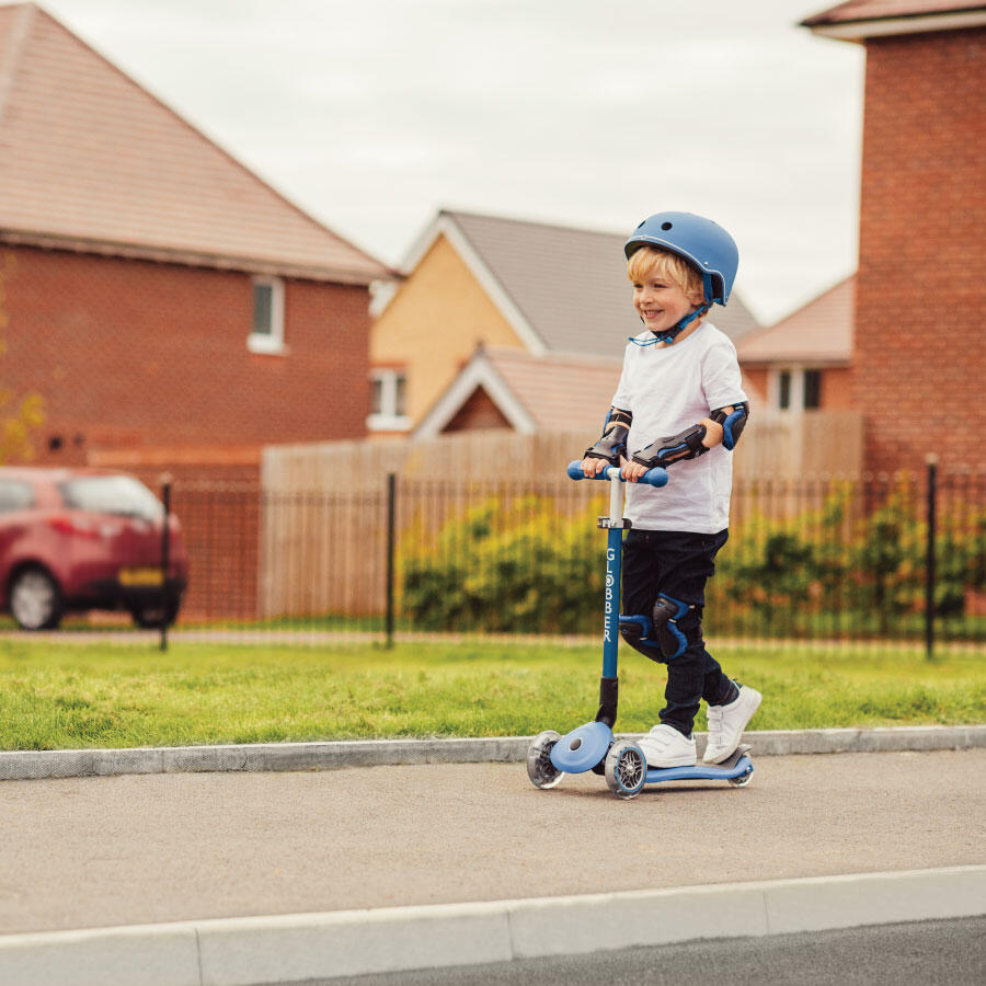 - • Primo 折疊燈是一款適用於 3 至 7 歲以上兒童的三輪折疊滑板車,得益於 Globber 的安全、專利和帶按鈕的集成折疊機構; 折疊滑板車既快速又簡單! 只需按一下按鈕,您就可以輕鬆折疊滑板車以手推車模式攜帶它,並在玩完遊戲後方便地將其存放起來!