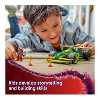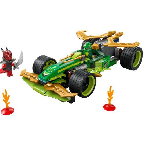 此扮演遊戲玩具拼砌組合配有 2 隻旋風忍者人偶:勞埃德(配備 2 個黃金武士刀配件),以及邪惡的龍人戰士(配備劍配件),讓孩子暢玩角色扮演,上演精采大戰。這款拼砌盒組還包含 2 個閃電零件,可為賽車打造小型障礙賽道。