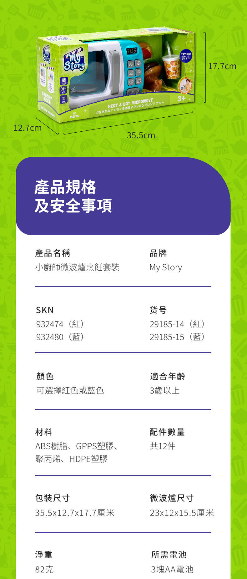 My Story 家家酒微波爐玩具組藍