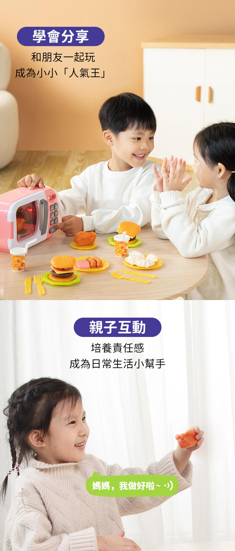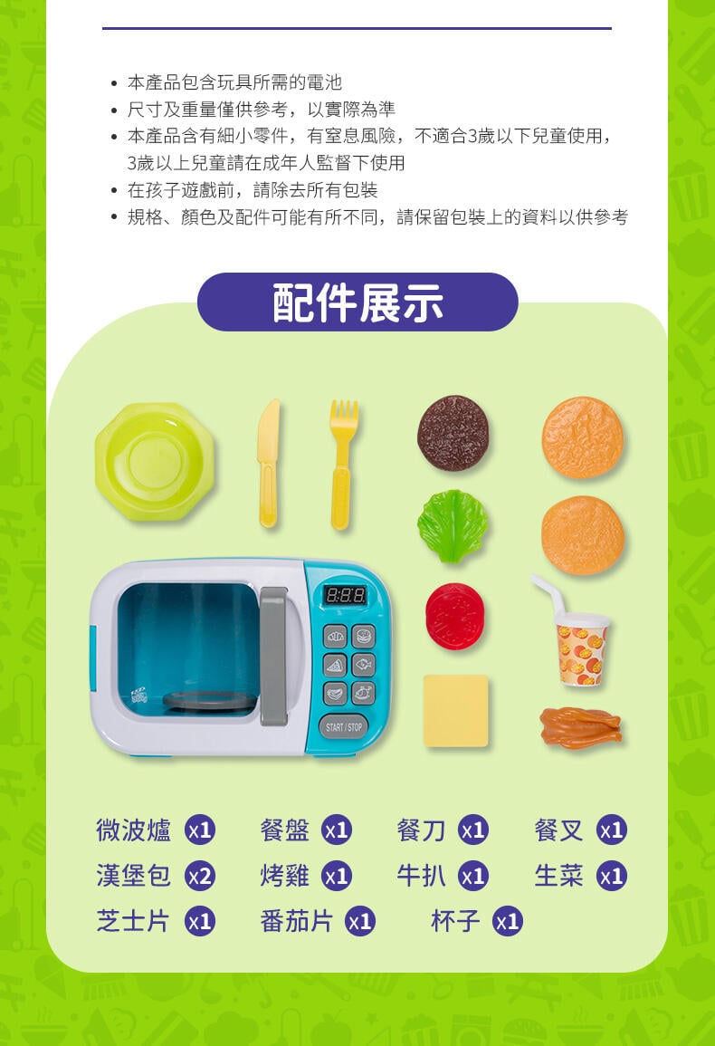 - 燈效、聲效和活動設計相當逼真的互動微波爐