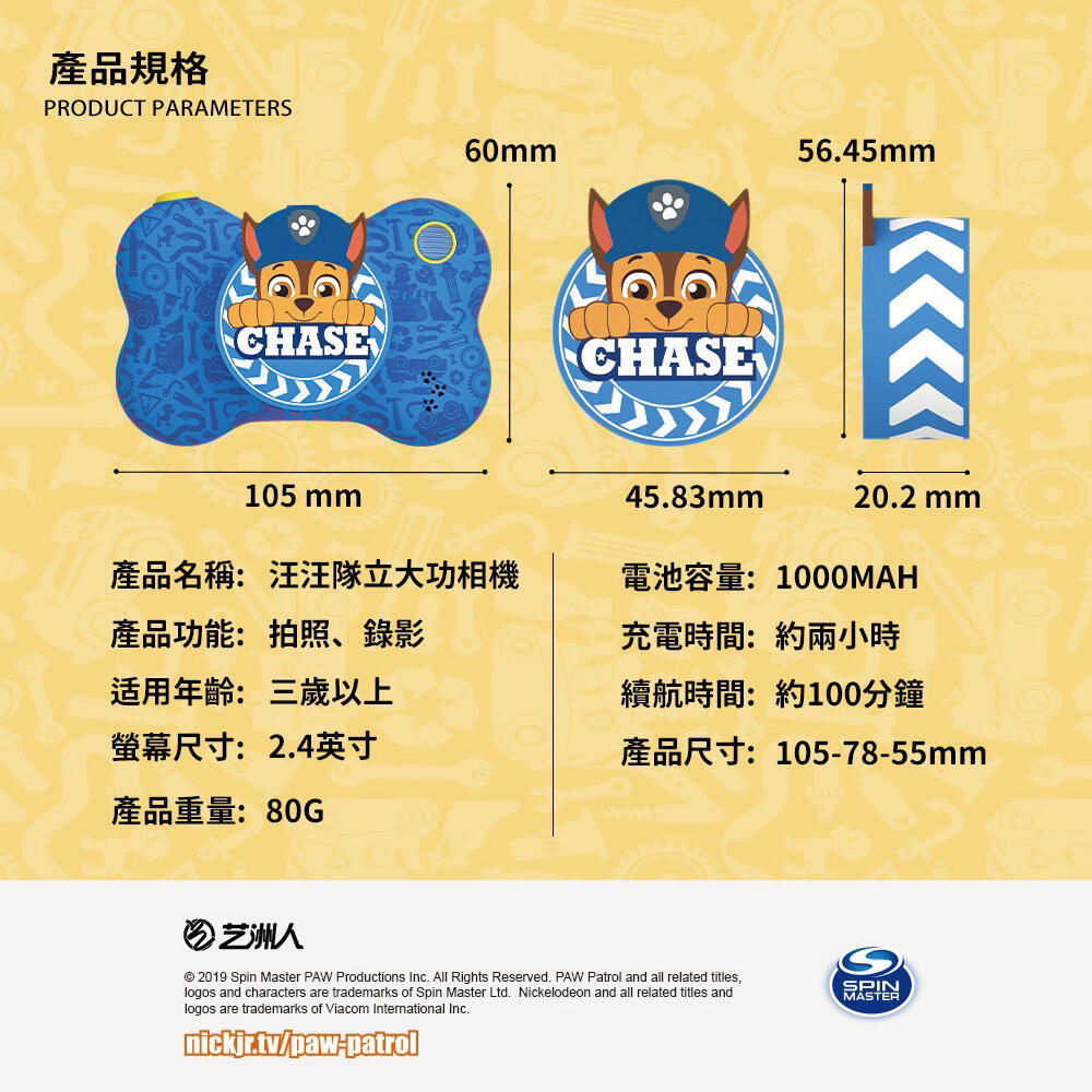 .● 正版汪汪隊授權相機,熱門角色阿奇、天天、小礫、毛毛多款選擇