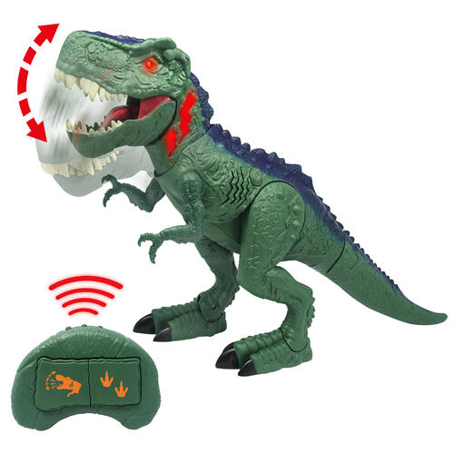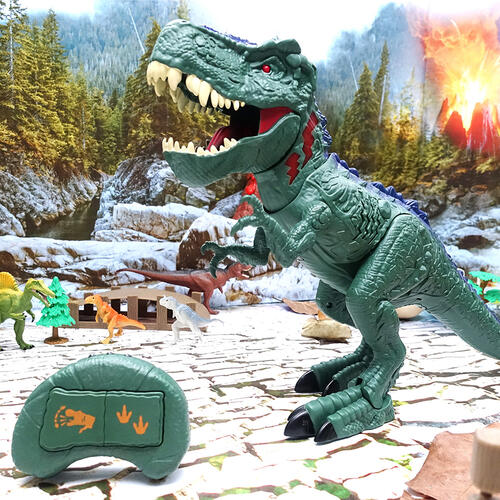 這款玩具配備了紅外線遙控,可精確操作,還具有發光的眼睛和頸部,模擬真實暴龍的動作,以及兇猛的跺腳動作。與這款動態玩具一起,迎接刺激的史前冒險!