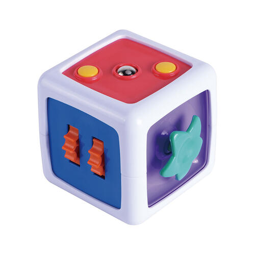 有6個可玩耍的面,每個面都有一項獨特的活動。大小正適合寶寶抓握和探索。讓寶寶的雙手和大腦忙碌起來。多樣的活動、紋理、顏色和聲音能激發寶寶的感官。有助於刺激和發展精細動作技能。