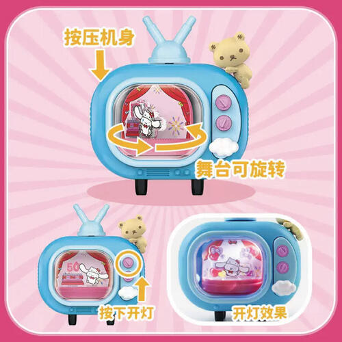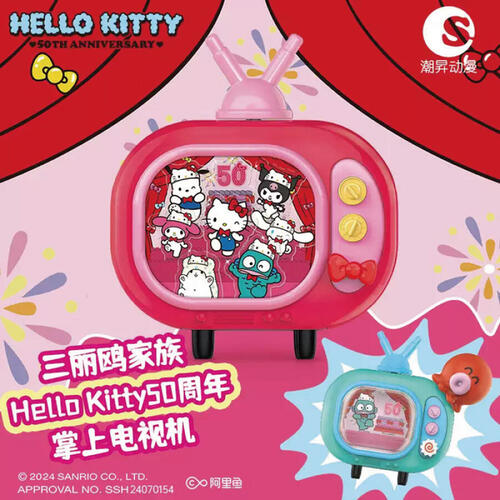 此系列產品主要圍繞Hello Kitty 50週年慶典主題。手持電視外型可愛,玩法多樣,迷你、便宜、好玩。這個手掌大小的東西可以放在家裡或辦公室。電視娃娃可以單獨拆卸,天線也可以拆卸。當插到電視背面時,電視就可以堆疊起來!輕輕一按電視,它還能翻轉!如果覺得電視太暗的話,還可以按下電視機前的開燈按鈕,電視就會亮起來喔!書桌上擺放著一台既美觀又好玩的電視,無聊的時候拿出來玩一玩也很不錯