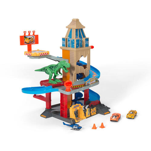 準備好進行史前冒險吧!套裝包括一隻兇猛的恐龍、兩架模型汽車和一架直升機。軌道設有可手動升降的汽車電梯。這款恐龍套裝非常適合年輕的探險家和恐龍愛好者,當恐龍試圖攔截過往的車輛時,它將為您帶來無盡的樂趣。