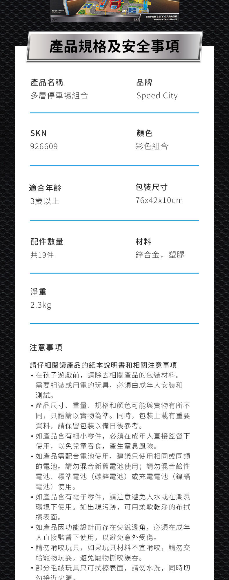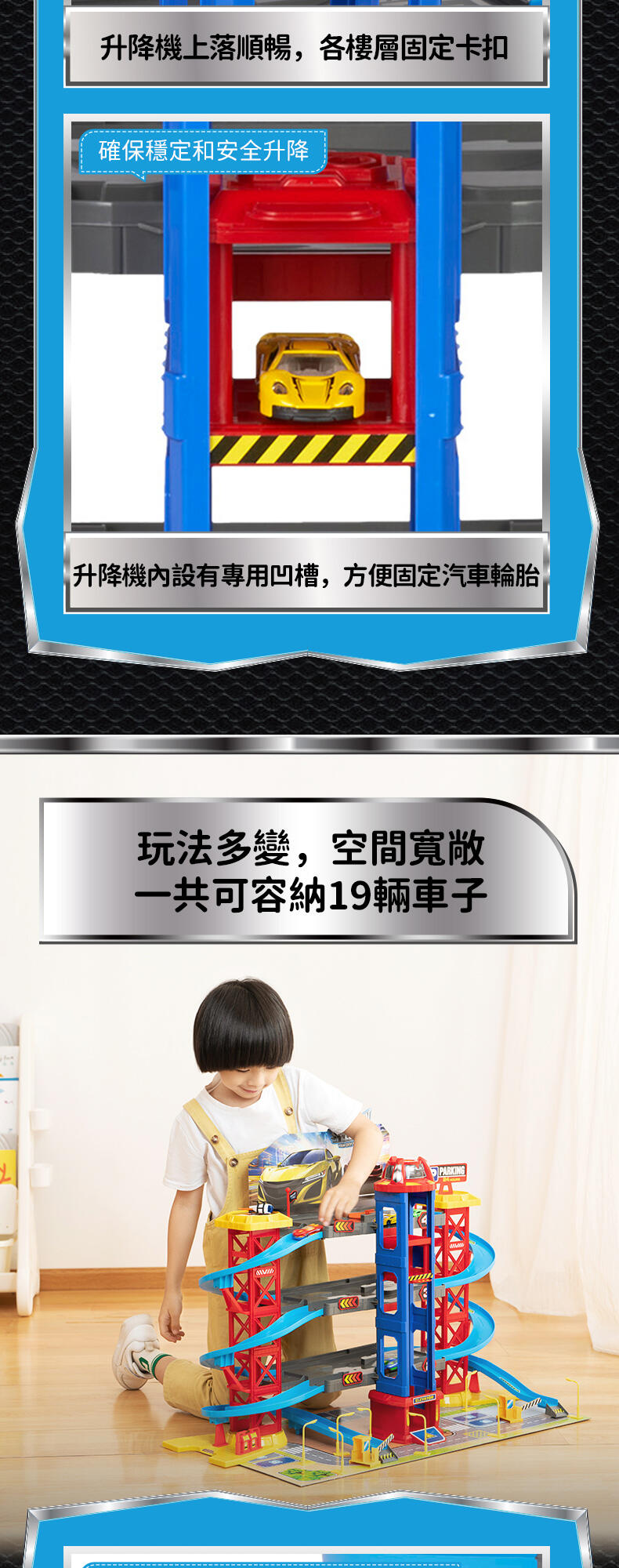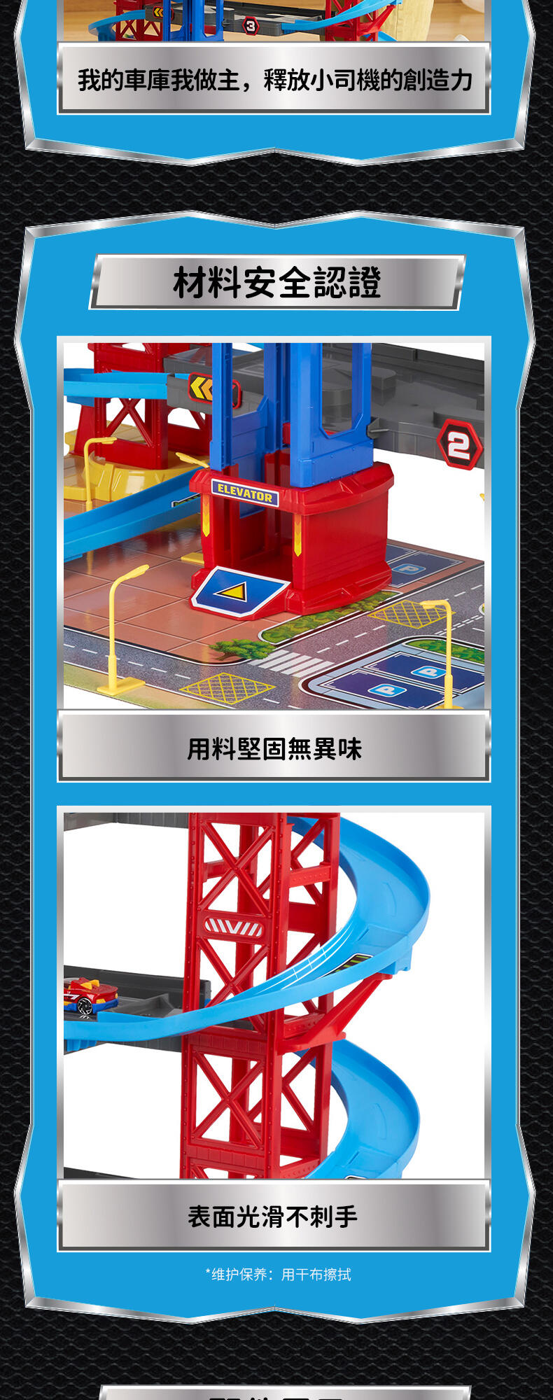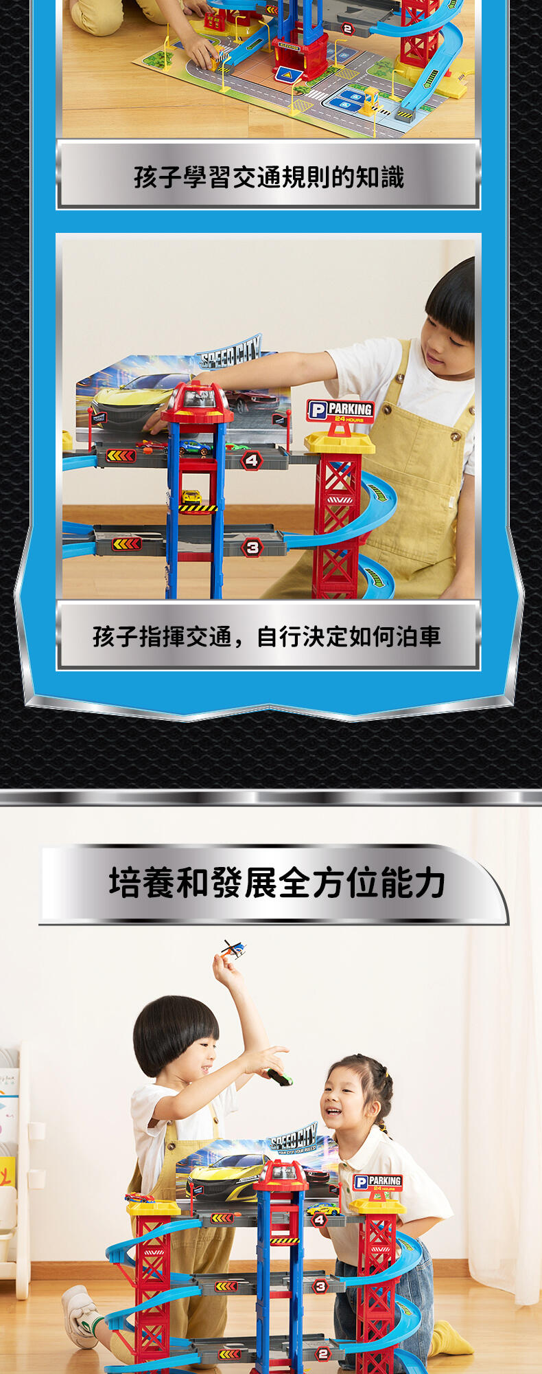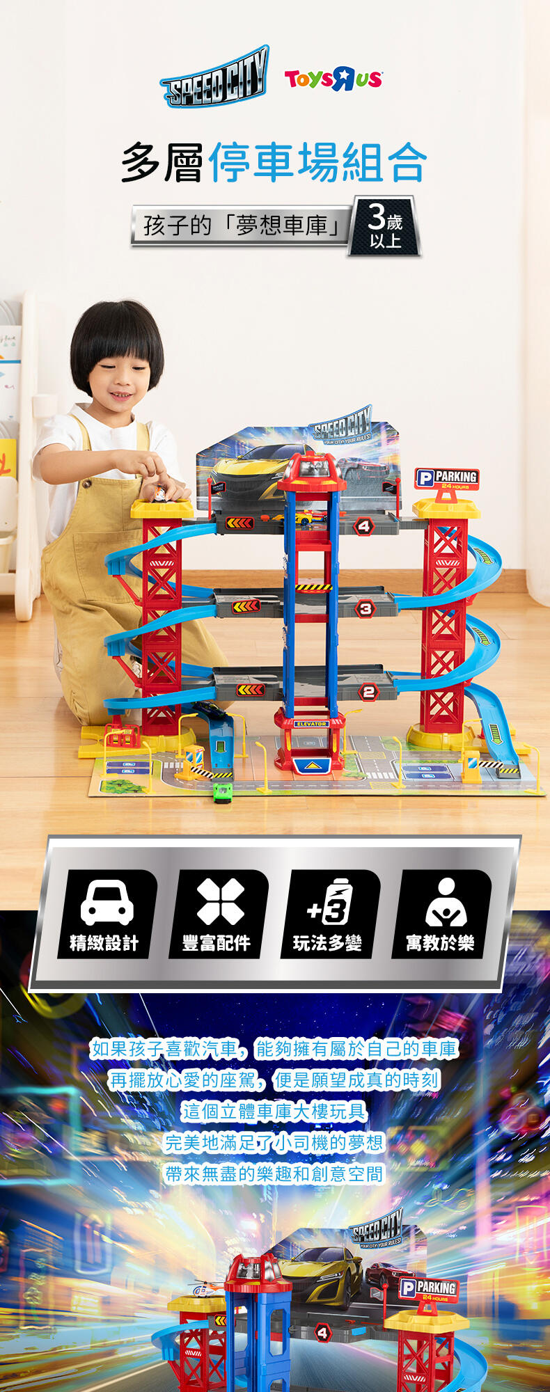 超級城市車庫是所有跑車和汽車的集中地。車庫共分4層,你可以在廣闊的空間操作可動的車用升降機、汽車啟動設施和5部壓鑄車。你也可以駕駛直升機從天台的停機坪著陸區升空,飽覽城市美景。這款套裝包羅萬有,讓你體驗城市的最繁忙一面。