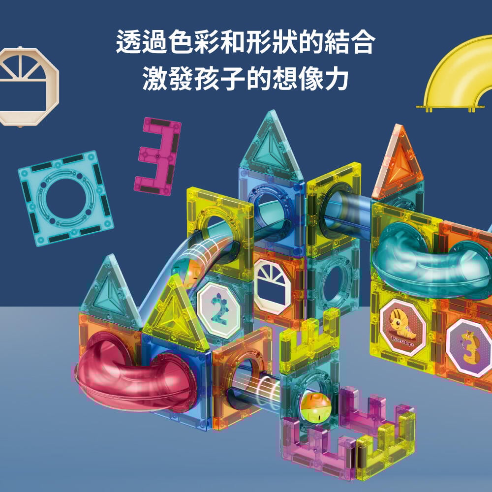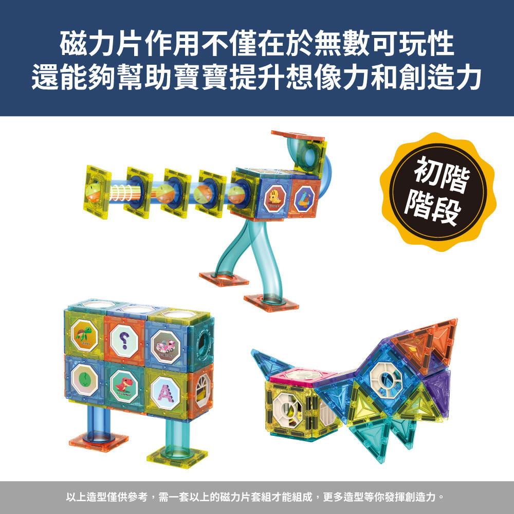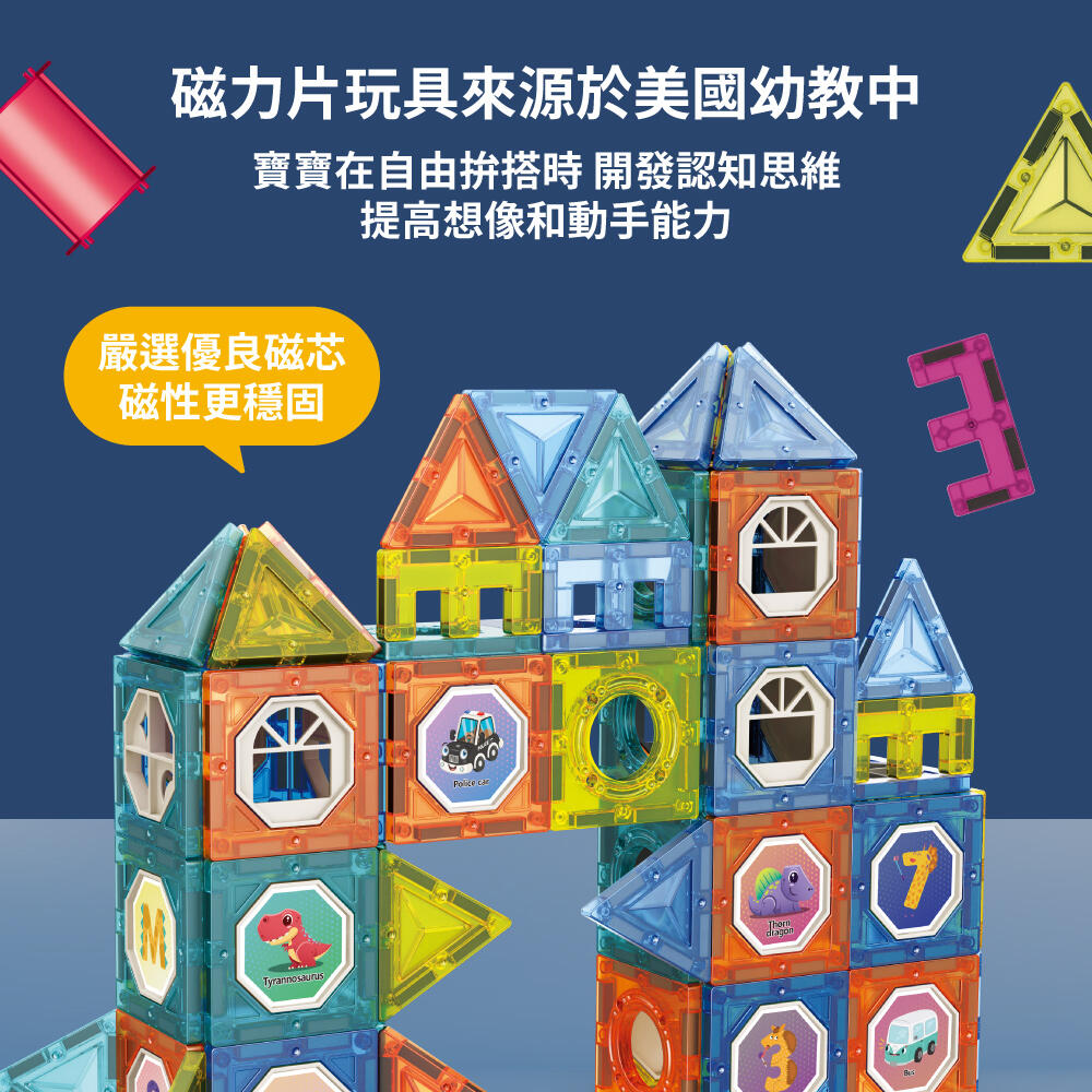 磁力片玩具,來源於美國幼教中,寶寶在自由拚搭時,開發認知思維,提高想像和動手能力,非常適用於3歲+寶寶啟蒙的玩具。