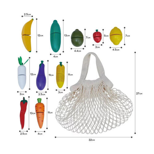 Teamson小廚師法蘭克福木製玩具蔬菜水果購物網袋11件套組