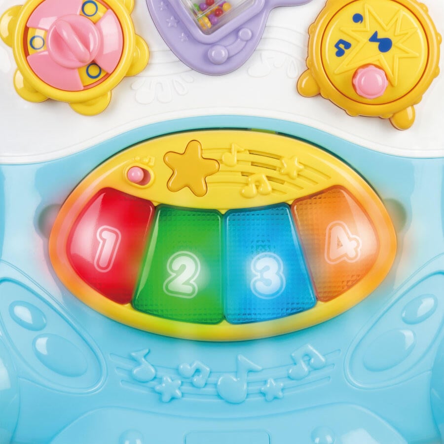 這件獨特的玩具可與小朋友一同成長,在每個早期學習及發展階段幫助他們培養基本技能。這件玩具可以坐著玩、站著玩、邊走邊玩;當小朋友成長至一定年紀,還可以用於騎行,幫助他們增強協調及平衡能力。音樂配件附帶燈光琴鍵,有助小朋友培養精細運動技能。
