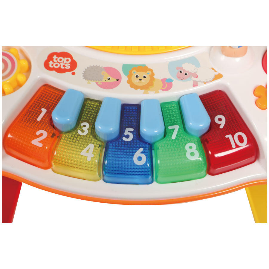 嬰兒們站立或坐在這張多功能互動學習桌前時多麼的忙忙樂樂。這款益智玩具有助嬰兒們發展想像力和多樣感知力。活動枱的物件上不同的顏色、形狀、燈光和動作,有助發尸廿金視覺和觸覺能力。至於那些歌曲、聲音和對話就能啟發聽覺和語言技能。