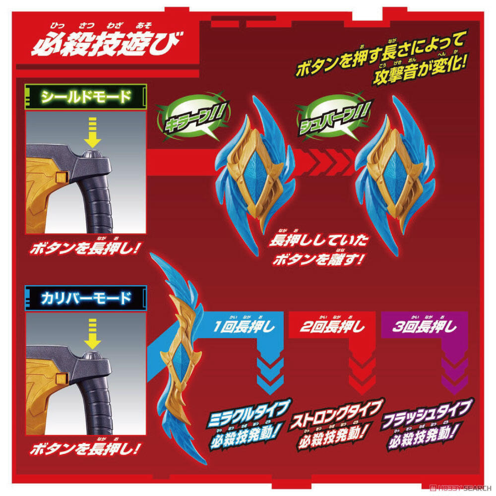 如果在 Calibur 模式下按住按鈕,將會聽到致命的攻擊聲!長按一次可以發動奇蹟系必殺技,長按兩次可以發動強力系必殺技,按三下可以發動閃光型必殺技。