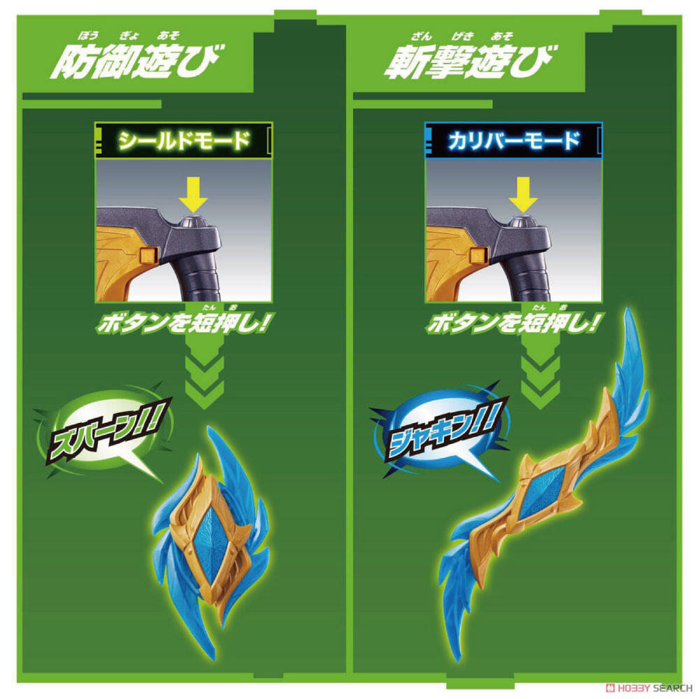 - 從盾牌(盾牌模式)變形時,變成全長約500mm的雙刃劍(口徑模式),音效變化!